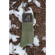 The ACE Schakal socks feature extra cushioning made from Merino wool in the areas of the foot where blistering and chafing occur the most. Padding around the toes not only helps to keep them warm, but also minimize blistering. Further cushioning on the parts of the foot that move the most, on the bridge, ankles, heel and achilles help maintain comfort. Beneath the calf where the cuff of a boot would sit is another cushioning point which helps keep heat inside the boot and prevents chafing.