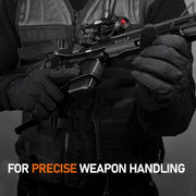 Every pair of ACE Schakal tactical gloves comes with a carabiner and strap so you can always have them ready at a moment’s notice. The carabiner attaches to the loop on the wrist of each glove. The strap can be secured to your belt or attached to any MOLLE system.