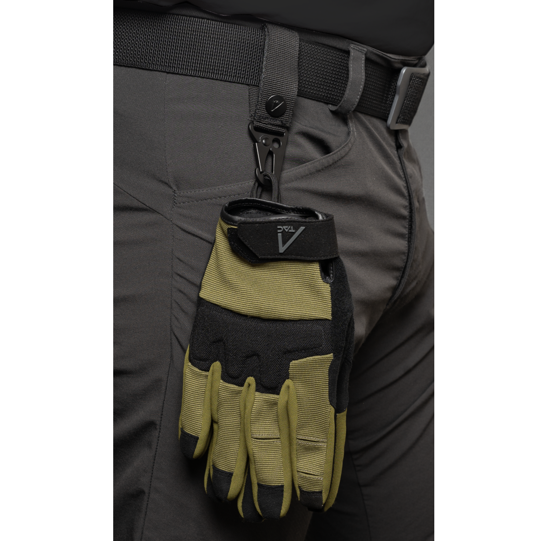 Every pair of ACE Schakal tactical gloves comes with a carabiner and strap so you can always have them ready at a moment’s notice. The carabiner attaches to the loop on the wrist of each glove. The strap can be secured to your belt or attached to any MOLLE system.