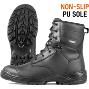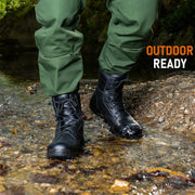 Our laced leather boots are ready for any kind of challenge. The outer materials are waterproof and keep your feet dry whether you are outside during the rain or walking through the morning dew while out on the hunt. A mesh lining inside the boot helps maintain breathability so you can keep on with the mission. The PU sole helps maintain grip with the ground so you don't have to worry about slipping either.