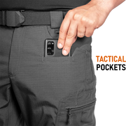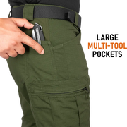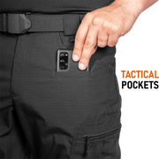 • Our tactical pants are made from a tough ripstop material blend which is also water resistant. These cargo pants are ready for any environment you bring them into.