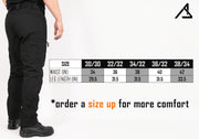 We know that for tactical missions, it’s important to have not just all your gear on you, but that it is always easily reachable too. That’s why we made sure you have access to all the pockets you would need. Two front and rear pockets offer plenty of space to keep items in reach. Thigh pockets offer even more room for larger items and two smaller pockets offer even space for phones or extra magazines. The knees even have pockets for insertable knee pads. Behind the calf down to the ankle is a zipper that can open the bottom hem so you can make space for larger boots.