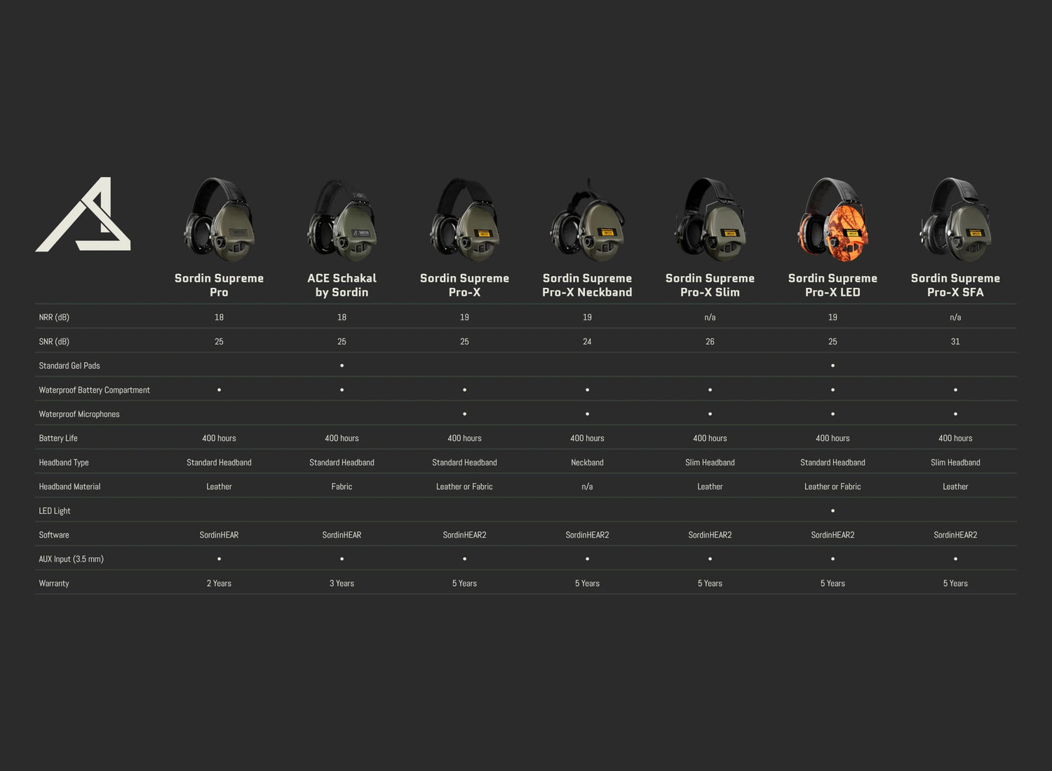 • Every Pro-X model features the new SordinHEAR2 software with 4 different audio profiles that adjust the audio spectrum from which ambient sound is amplified.